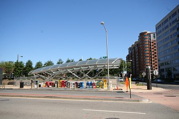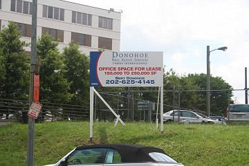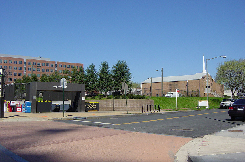 A view of the New Jersey and M intersection, in August 2005. The glass canopy of the Navy Yard Metro exit was installed in April 2006. (08/05)