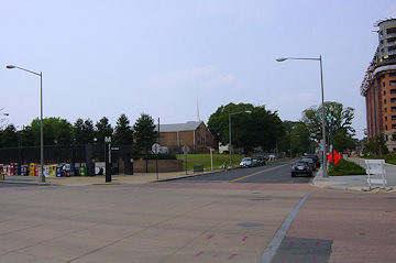 April 9, 2005 - The western side of New Jersey Avenue, north of M Street, home to the sleepy east entrance of the Navy Yard Metro station, along with a grassy knoll and St. Matthew's Church. Donohoe purchased much of the land in 2005, then added some small lots that WMATA owned as part of the Navy Yard Metro station east entrance, and finally added the since-razed St. Matthew's Church to the project footprint.