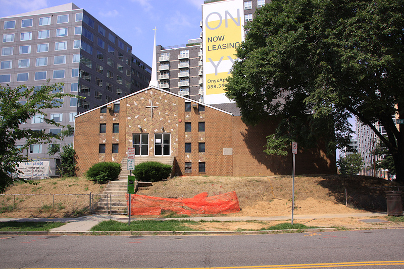 July 12, 2014 - A last photo of St. Matthew's Baptist Church, not quite two months before its demolition. The hill it stood on is gone as well.