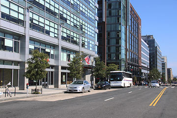 Looking at the north side of M Street, from east of South Capitol Street, in January, 2003. 20 M's lot is at the far left. 80 M, 1100 New Jersey (under construction in this photo), and 300 M are the other office buildings in this photo. (01/03)