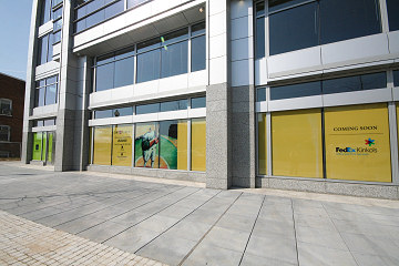Signs posted in windows on M Street announce the arrival of Wachovia Bank (far left) and FedEx/Kinko's (far right). The Wachovia then became a Wells Fargo, and FedEx/Kinko's never arrived. (3/22/07)