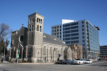 20 M has changed the South Capitol and M intersection landscape, even though it's a half-block away; St. Vincent de Paul's church now has a friend looming over its shoulder. (01/07)