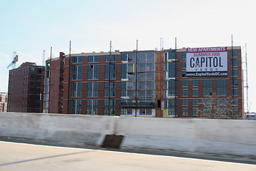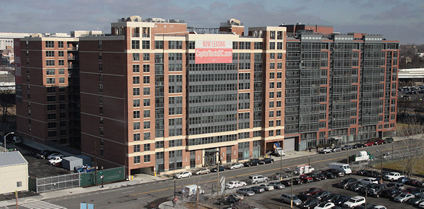 70 I (left) and 100 I (right) are two rental buildings by JPI, on I Street SE between Half and First (seen here from a rooftop two blocks to the south). 70 I, now dubbed "Jefferson at Capitol Yards", has a "warehouse and industrial theme" design, while its sibling 100 I ("Axiom") has a more modern design. Both have rooftop pools, fitness centers, a "resident pub", and concierge service. 70 I started move-ins in June 2008, with 100 I following the next month.