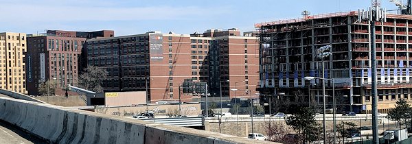 The same location, nearly eight years later, with 70/100 I now dominating the view from the freeway, and obscuring the view of many of the other new buildings that have risen in Near Southeast. (The residential project