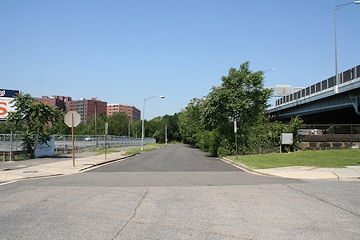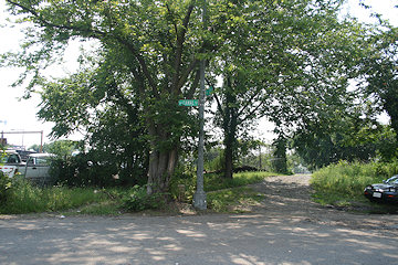 July 18, 2006 - Before work began to redevelop Square 737, Canal Street ran on a strange northwest-then-north path through the block. Here is its intersection with H Street, with New Jersey Avenue laying just beyond the overgrowth.