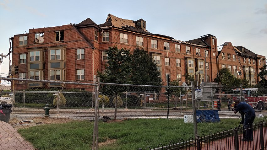 a four-alarm fire that began in the attic spread across the entire top of the Capper Seniors building, leaving the roof destroyed and the top floors heavily damaged. Donations to help the displaced residents can be made