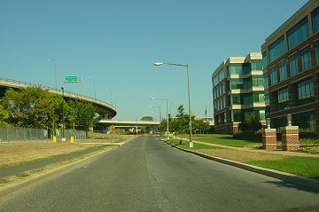 A view of Maritime Plaza from 12th and Water Streets, peeking from beneath an 11th Street Bridge overpass. The proposed hotel site is on the empty lot in the middle of this photo. (10/05)