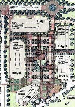 Maritime Plaza. The first two phases (Buildings I and II) have already been completed, offering 345,000 sq ft office space, and housing contractors working with the Navy. Phases III and IV are each 175,000 sq ft/7-story office buildings; there are also plans for a 250-room 8-story hotel at the southwestern edge of the property. No timetable has been announced for construction of the rest of the project.
