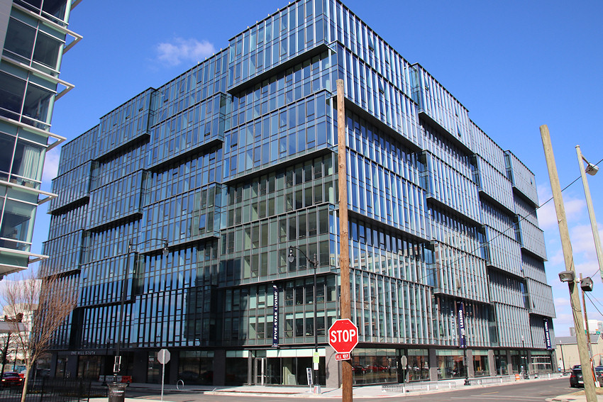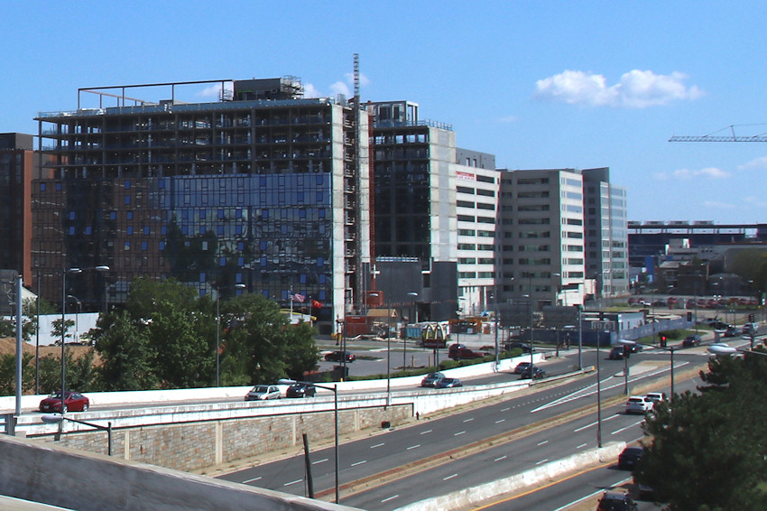 Aug. 20, 2016 - The building has now taken a prominent position in the view of the neighborhood from the Southeast Freeway. Nats Park is visible down South Capitol Street at far right.