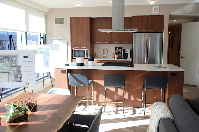 Dec. 9, 2016 - A first peek at the kitchen in the 2-BR model unit.