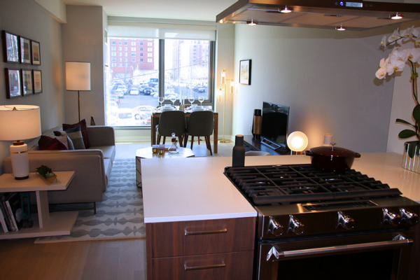 Dec. 9, 2016 - The living space in the 2-BR model, as seen from the kitchen.