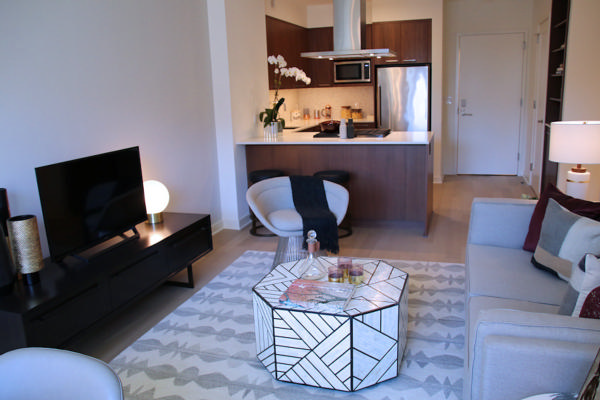 Dec. 9, 2016 - The one-bedroom unit model's living space.