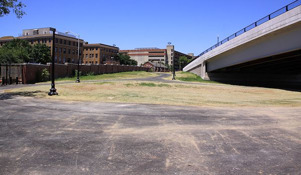 Turning around and looking back toward O Street. The path here is oval, and eventually will run to the right along the Anacostia toward RFK (once DC Water finishes ripping up Water Street). (This spot