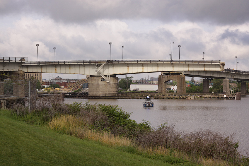 The Douglass Bridge's swing span just starting to open. (The first time I've ever seen it!)