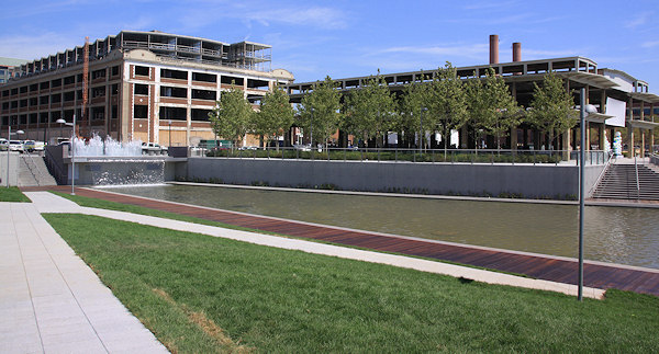 Another view of the basin, along with the Foundry Lofts apartment building currently under construction and the Lumber Shed (which will remain without walls for now, but will eventually be a glass-enclosed retail space).