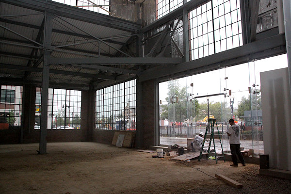 Checking out the build-out on a rainy day of the Boilermaker Shops, a World War I-era industrial building being converted into a retail space at The Yards. For more information about the Boilermaker building, including "before" photos, see my project page.