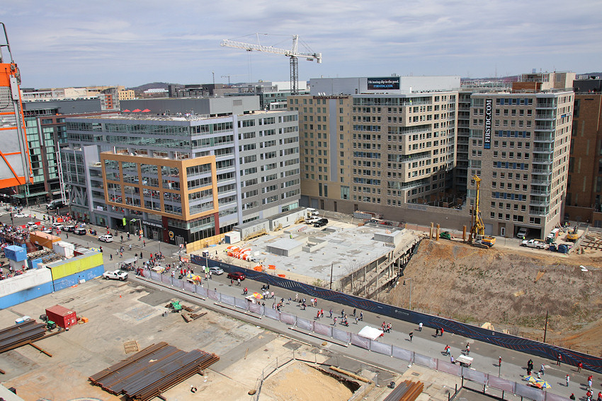 The view to the northeast from the roof, showing 55 M, F1rst, the Half Street Hole, and the shrunken Fairgrounds footprint.