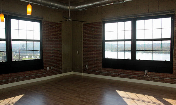 The very industrial feel of the corner unit, with its views of the Display Ship Barry, the Anacostia River, and Poplar Point.
