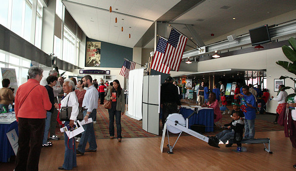 The Stars and Stripes Club (southern portion), set up with exhibitors (including the rowing machine brought by the Anacostia Community Boathouse Association). (link)