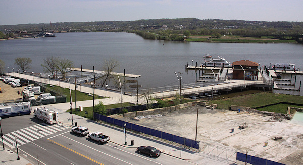 Diamond Teague Park and Piers, with both the Potomac Riverboat water taxi (right) and a boat from DC Harbor Cruises (the Patriot II) docked there. (link)