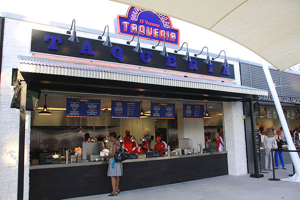 Another view of the seating area, with the taqueria visible in the background. (link)