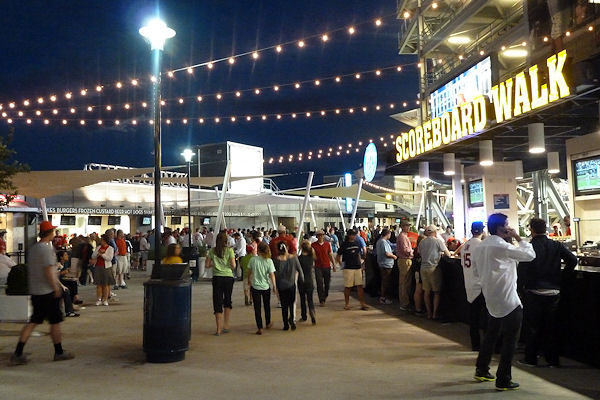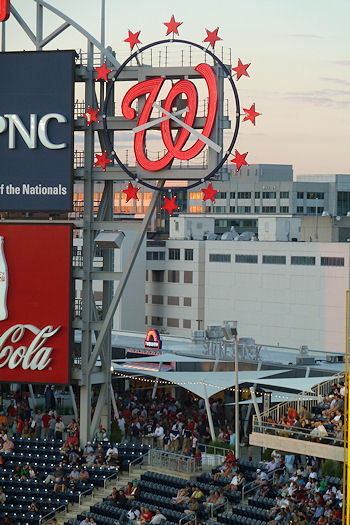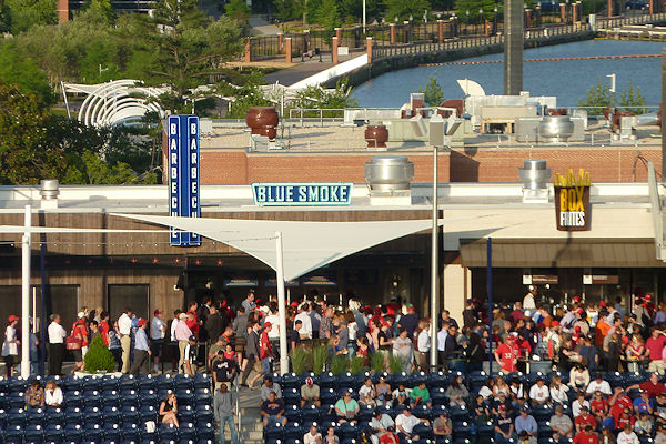 A glimpse of two of the new stadium eateries (and the crowds in line)--with the Yards Park pedestrian bridge and the Navy Yard Riverwalk both visible as well. (link)