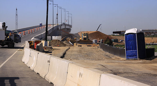 Just as the bridge begins to rise, you can see to its right the beginnings of the eventual new connection between southbound DC 295 and the new inbound 11th Street Bridges. (Yes, you will be able to get right on the 11th Street Bridges and then the Southeast/Southwest Freeway from DC 295 when this is done!)