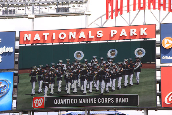 The Quantico Marine Corps Band played America the Beautiful and the National Anthem.    (link)