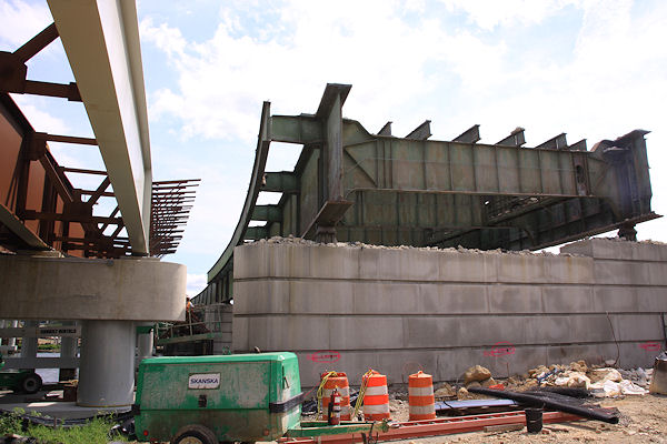 at-grade Southeast Blvd.. The filling in will begin in the distance where you see the grass shoulder, running to 11th Street, seen below in its current bridge format but which will be replaced with an at-grade street, and then onto 13th Street. There will also be a new flyover ramp from the Southeast Freeway to outbound I-695, replacing the flyover seen at top.
