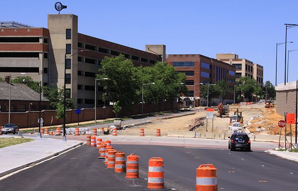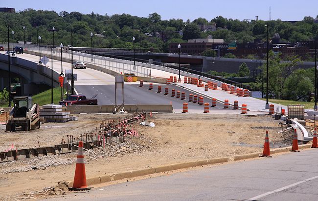 used to look a bit different.) Jutting out from the new 11th Street Local Bridge onto the piers from the old bridge are two pedestrian overlooks, not yet open.