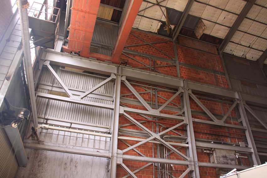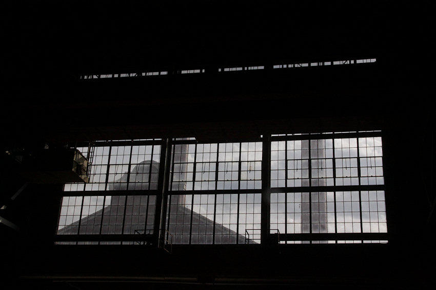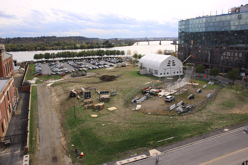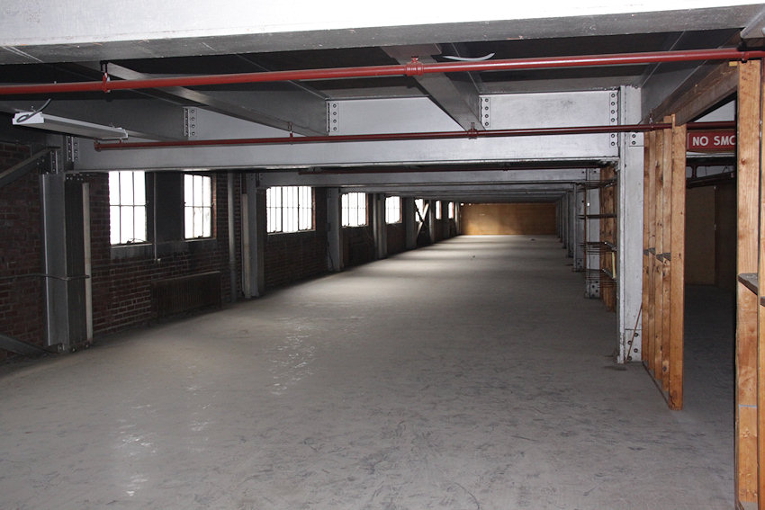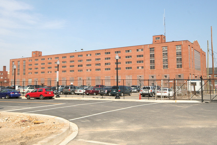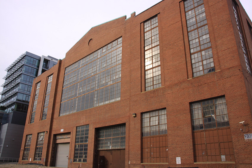 Building 202, aka the Broadside Mount Shop, aka the Navy Gun Asssembly Building, originally built in 1941. After the Navy moved out, various federal agencies occupied the building, including the Federal Protective Services, until Forest City took over the building as part of the Yards footprint in 2006. For a time PN Hoffman had been attached to a planned renovation to turn it into condos, but now the