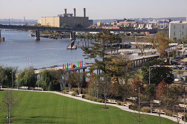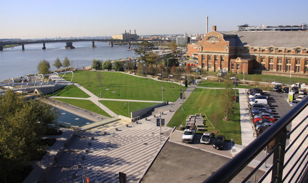 The Foundry Lofts building as seen from the Yards Park. The floors on top, which are the two-story penthouse units, were added to the original historic stucture. (Just as a reminder,