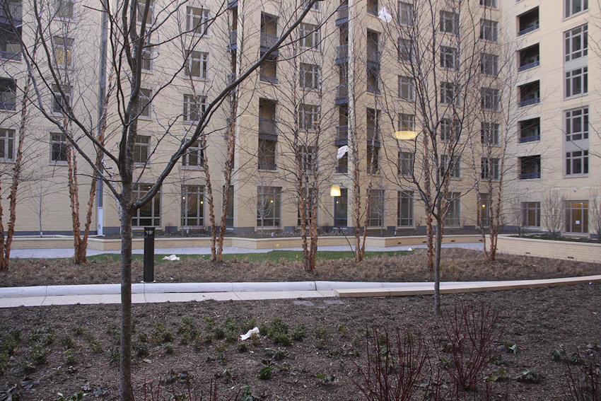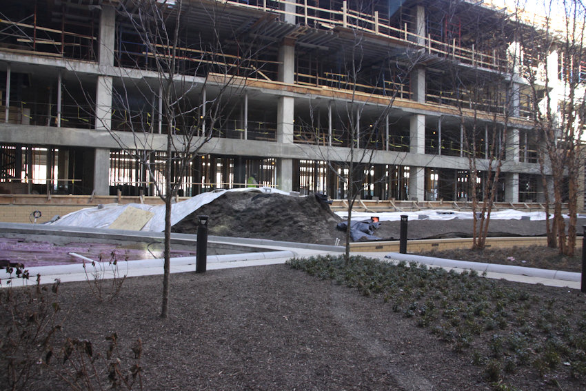 Looking back toward the main entrance of the leasing center, which will eventually handle all three buildings at WC Smith's "Collective"--the Park Chelsea, Agora, and the Garrett. (link)