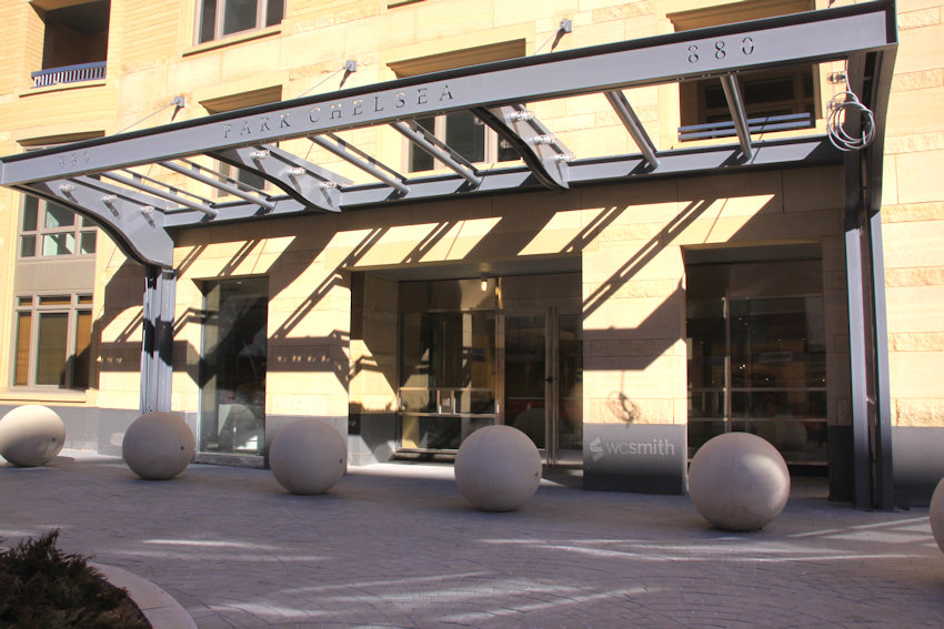 The Park Chelsea's main entrance (note the fun shadows cast by the cut-outs on the canopy. (link)