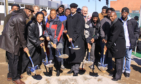 Diamond Teague's parents Ivory and Florence, along with Mayor Fenty, Councilmember Wells, and members of the Earth Conservation Corps, perform the ritual shovel hoisting at the