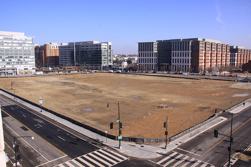 Jan. 22, 2015 - The cleared site back in 2015, as seen from a Nats parking garage, to give an idea of location and scope, before the parking lot was reconstituted and the northern park area built.