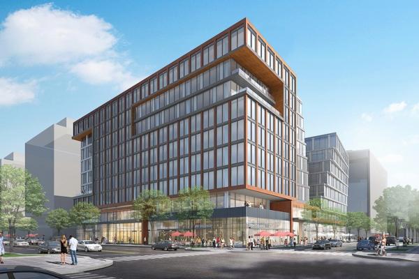 April 11, 2018 - A rendering released by Forest City in April 2018 showing a similar angle to the above shot, looking at the planned office building on Parcel F on the northeast corner of 1st and N Streets.