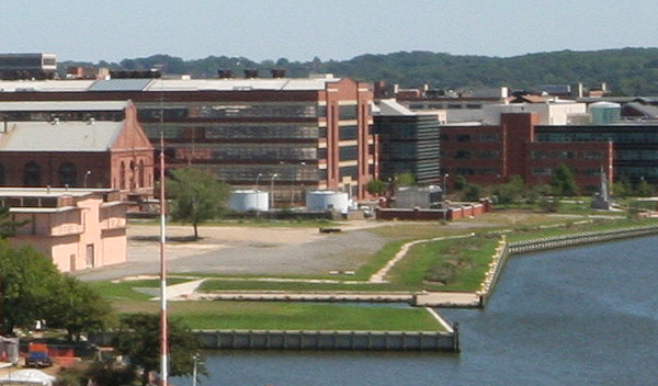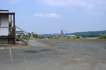 Standing south of the axis of Fourth Street, looking east toward the Navy Yard and the Display Ship Barry, in 2005. (8/6/05)