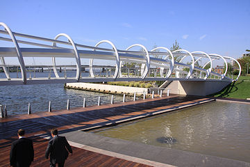 Sept. 7, 2010 - The Pedestrian Bridge and Light Tower, seen at the park's Sept. 7 grand opening. For many more photos from the ribbon cutting,