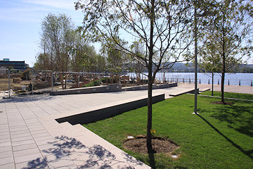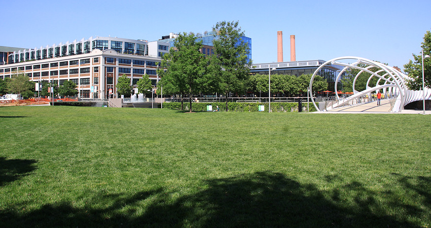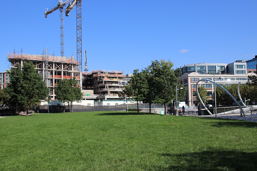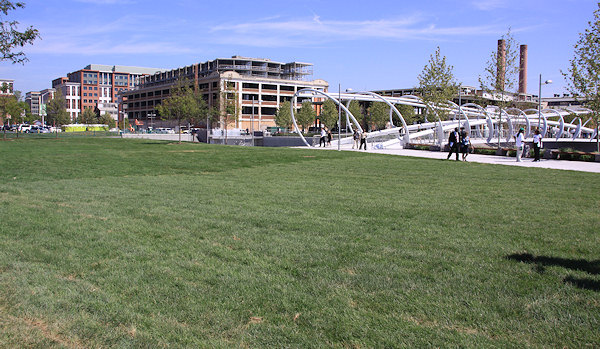 Sept. 7, 2010 - Standing on the Great Lawn the day of the park's opening, looking back toward the Canal Basin and the Foundry Lofts.