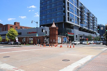 May 6, 2007 - The southeast corner of 4th and M Streets, seen here in 2007, with the very historic red brick wall and turret dominating.