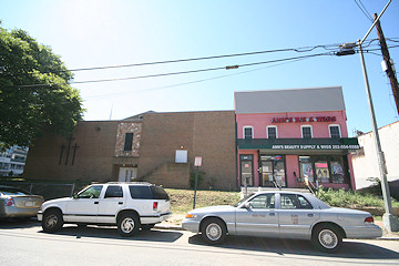 July 12, 2014 - A last photo of St. Matthew's Baptist Church, not quite two months before its demolition. The hill it stood on is gone as well.