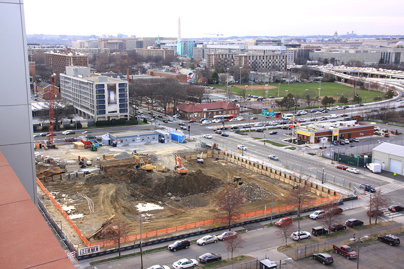April 2, 2015 - Sneaking a peek at the 909 Half Street site from a neighboring roof not long after the start of excavation.