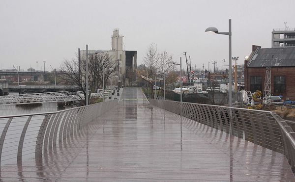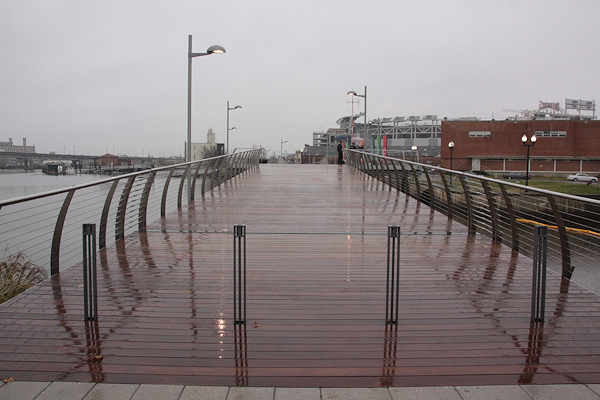 The bridge, awaiting its dedication, looking from Yards Park toward Diamond Teague Park and the Nationals' stadium.    (link)