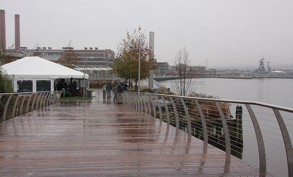 On final approach to the Yards Park, with the Navy Yard and Display Ship Barry at right.    (link)