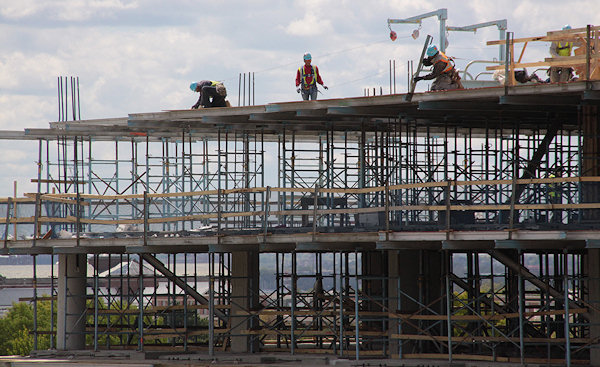 There may be a ball game across the street, but these apartment buildings don't build themselves.