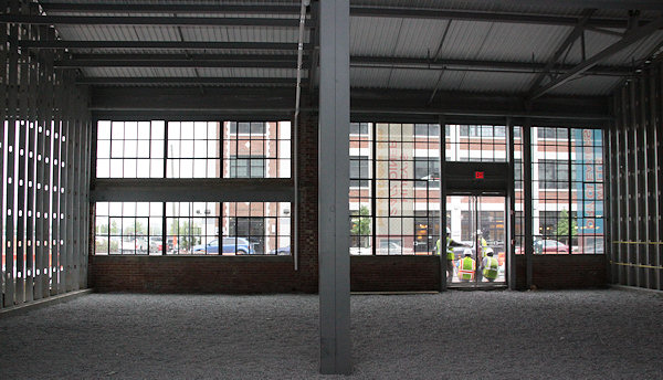 Checking out the build-out on a rainy day of the Boilermaker Shops, a World War I-era industrial building being converted into a retail space at The Yards. For more information about the Boilermaker building, including "before" photos, see my project page.