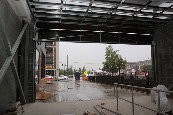 Checking out the build-out on a rainy day of the Boilermaker Shops, a World War I-era industrial building being converted into a retail space at The Yards. For more information about the Boilermaker building, including "before" photos, see my project page.