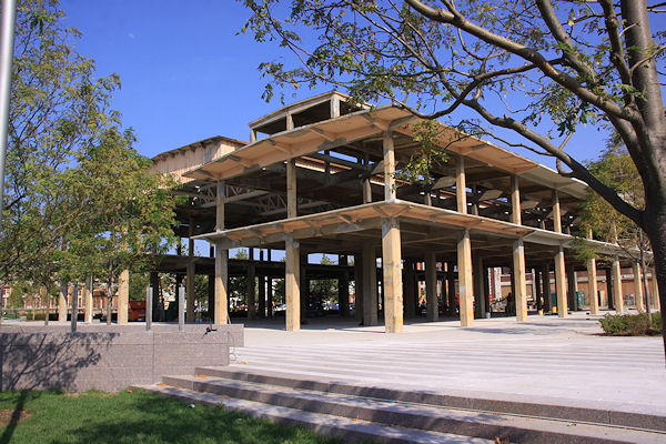 The de-skinned Lumber Storage Shed. For the park's initial phase, it will remain open, but will eventually be given glass walls and will become a retail pavilion.