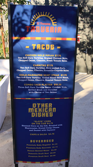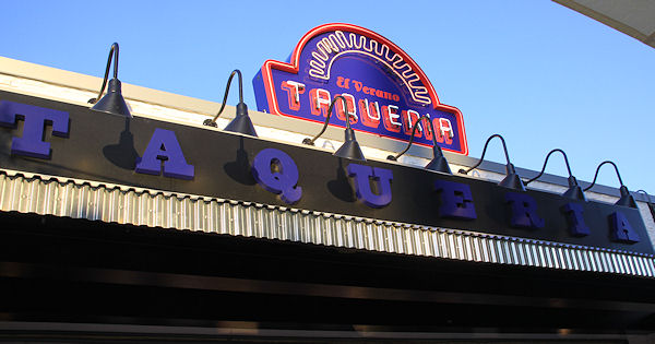 Another view of the seating area, with the taqueria visible in the background. (link)